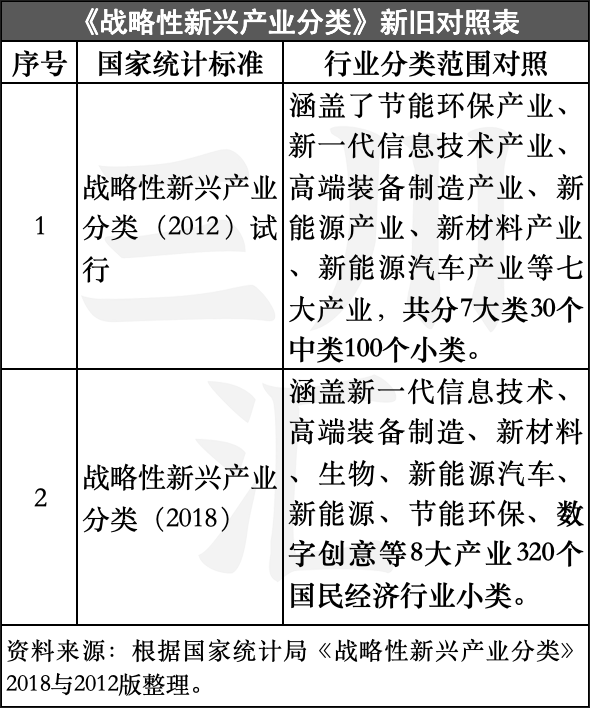 为了准确把握“十三五”期间国家战略性新兴产业的发展情况,2018年国家统计局在现有的《战略性新兴产业分类(2012试行)》基础上进行修订,依据国家发展改革委发布的《战略性新兴产业重点产品和服务指导目录(2016)》和《国民经济行业分类》(GB/T 4754-2017),对符合“战略性新兴产业”特征的活动进行再分类,编制了《战略性新兴产业分类(2018)》,为政府制定相关政策和引导资金投入提供参考。
